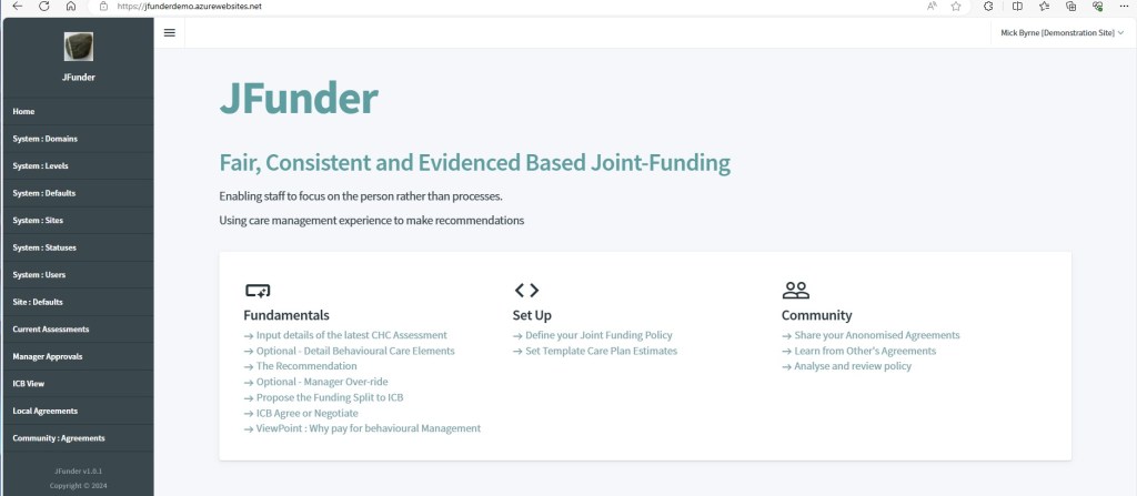 Using this, and details of past agreements the Local Authority and ICB have made, JFunder makes a recommendation to the user.